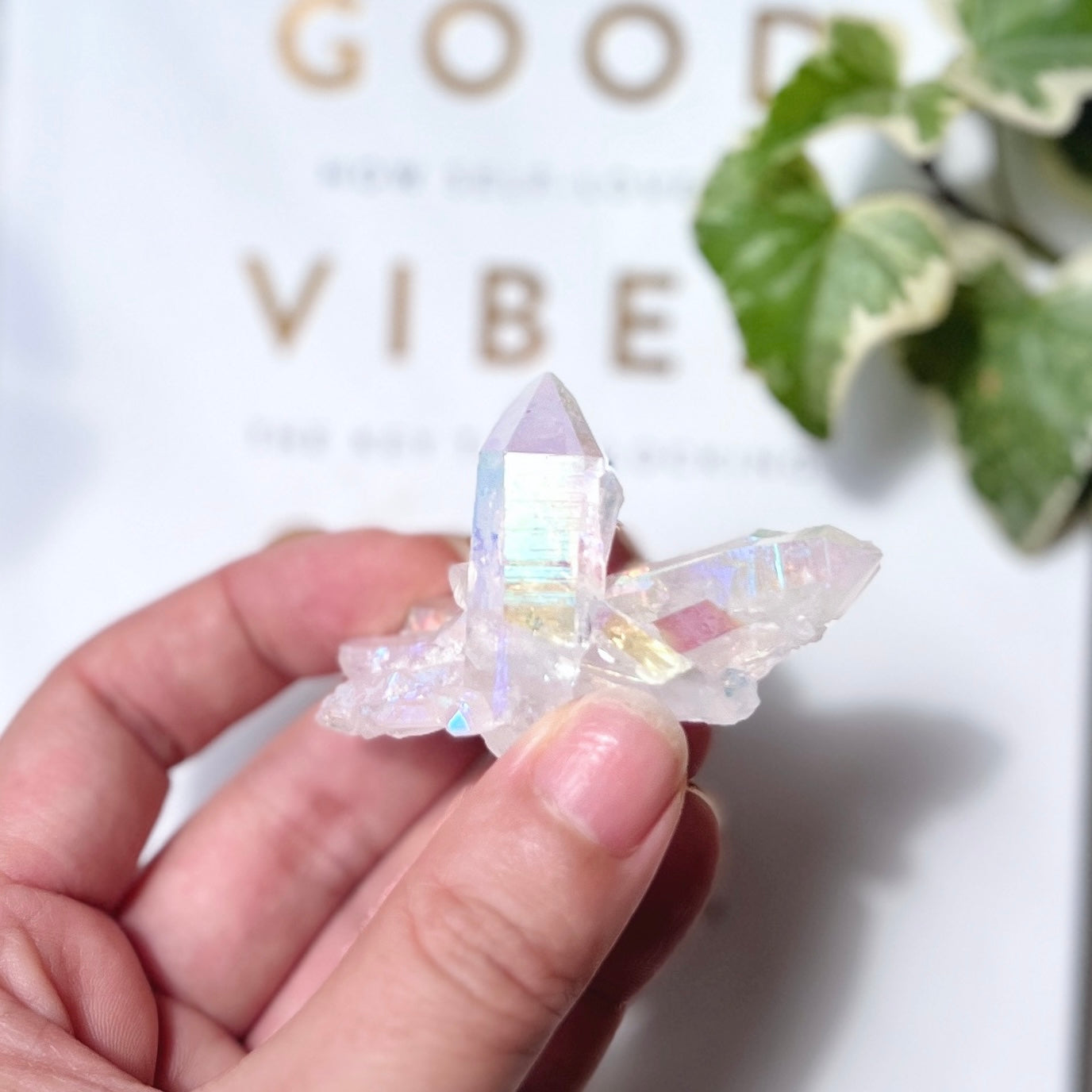 Angel Aura Quartz is an extremely high vibrational stone. This magic mineral can provide enough energy to fill environments with endless rays of joy, happiness, and uplifting energy.