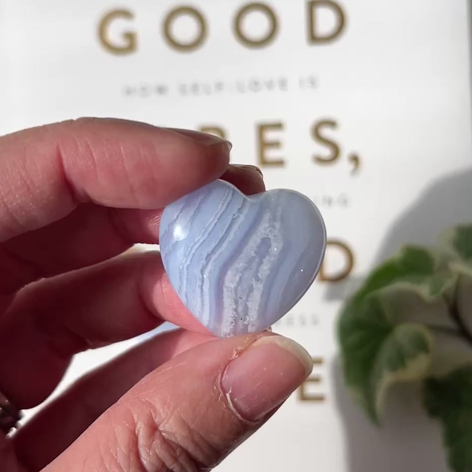 Blue Lace Agate is calming and soothing. A stone for communication and self-expression.