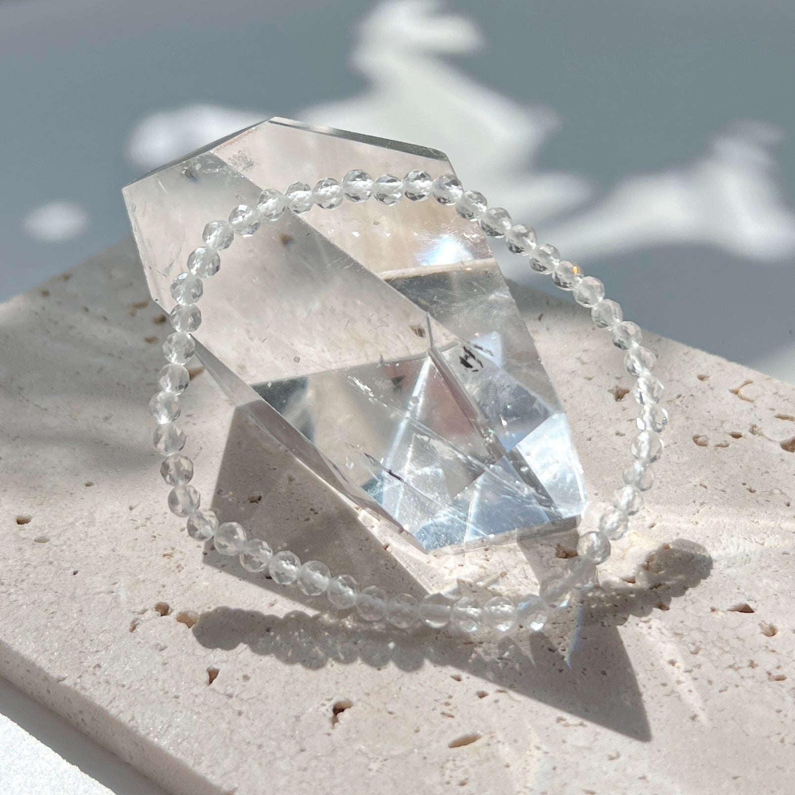 April Birthstone 4月誕生石 - Clear Quartz Faceted Bracelet 4mm 白水晶