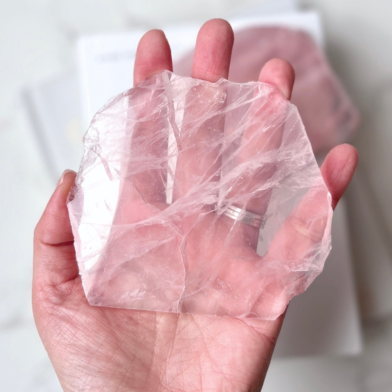 Raw Rose Quartz full of rainbow! Place at your home to bring in loving energy!
