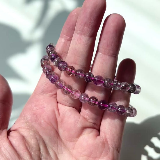 Super Seven is a rare substance composed of 7 crystals in one. They are Amethyst, Clear Quartz, Smoky Quartz, Cacoxenite, Rutile, Goethite and Lepidocrocite.